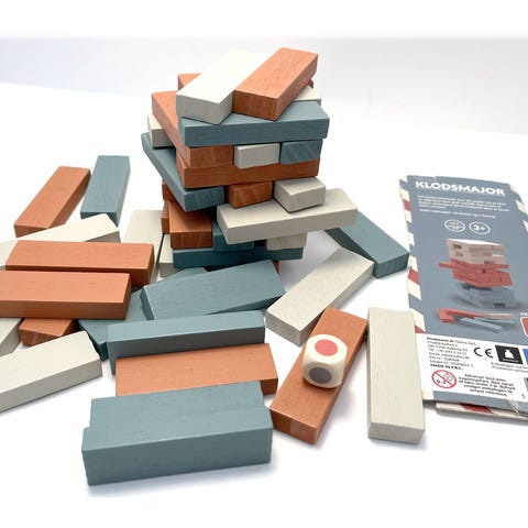 Klodsmajor er et actionspil for hele familien. Spillet indeholder 45 klodser i forskellige farver samt en terning og spillerregler. Det er designet til at bygge et tårn af klodser, som spillerne skiftevis fjerner uden at vælte strukturen. Det er velegnet til børn fra 6 år og op, og spillet kan spilles af 2 til 6 deltagere. Boksen er 27x27 cm.