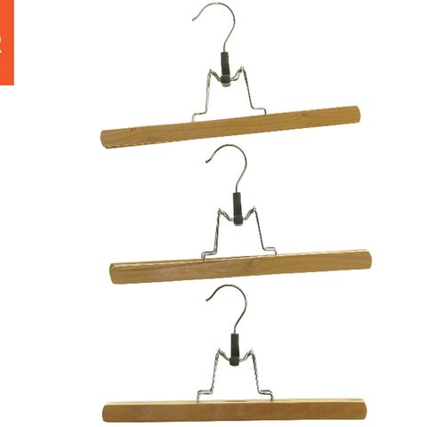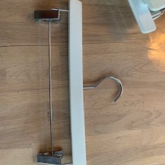 Sæt med 4 sorte buksebøjler med metalbeslag og kroge. Bøjlerne måler 26,5x17 cm hver og er designet til at holde bukser eller nederdele uden at glide af. De er robuste og lette at bruge, med en solid metalbøjle til ophængning.