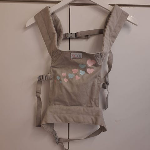 Tags: dukke, bæresele, lyserød, blomster