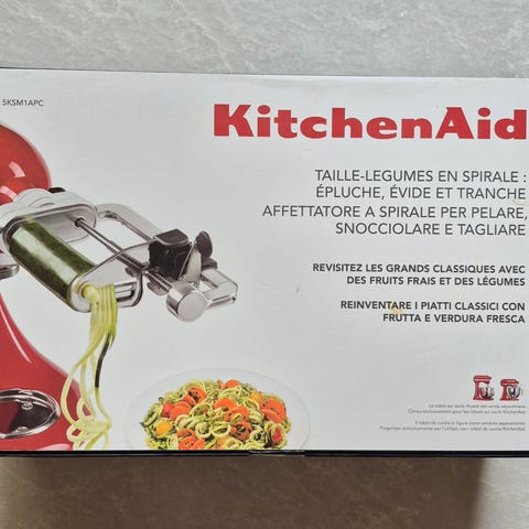 KitchenAid spiralskærer 5KSM1APV med funktion til skrælning, kernefjernelse og skæring. Designet til at lave spiraler af frugt og grøntsager.