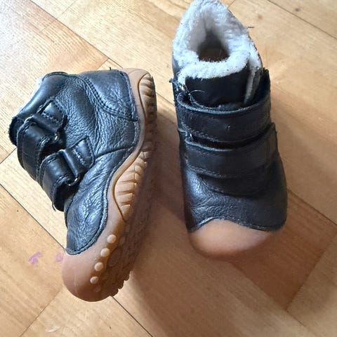 En rigtig god første gangs vinterstøvle med ekstra beskyttelse ved tæerne. Sålerne er med termo foer. Foret i støvlen er i 100% uld og skindet er vegetabilsk farvet.