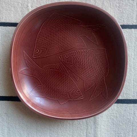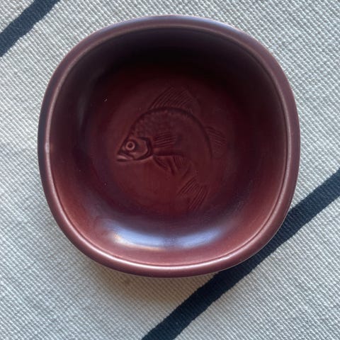 Brunt fad/skål, ingen skår eller revner.