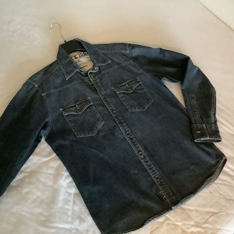 Jack & Jones Premium denimskjorte i blå farve, størrelse L. Skjorten er lavet af denimmateriale og er designet til mænd.