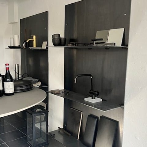 Har en god bunke af forskellige elementer til disse reoler så de kan sættes forskeligt sammen:
