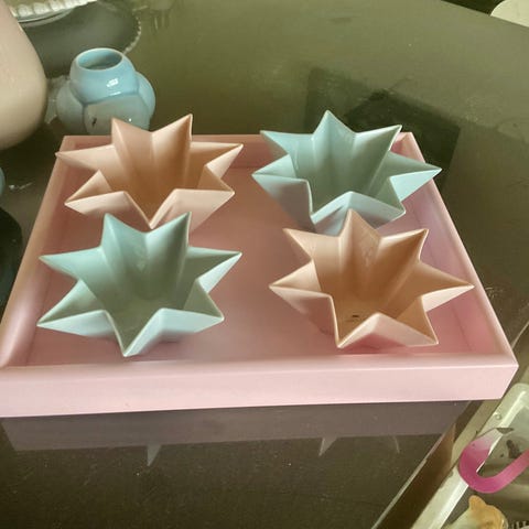 Kähler service bestående af tallerkener, skåle, kopper og kander i turkis porcelæn. Servicen indeholder flere dele i forskellige størrelser og kan anvendes til dagligt brug i køkkenet.