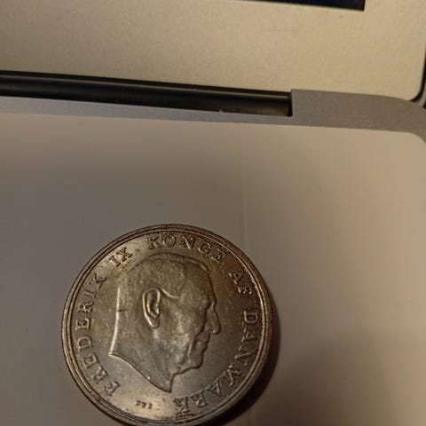 Erindringsmønt 10 kroner. Fra 10. Juni 1967 fra Prinsecce Margrethe og Prins Henriks bryllup. Kong Frederik IX på den ene side. Mønten er lavet af sølv og vejer 22 g. Dia: 3,5 cm.. Sælges for kr. 400. Sendes mod fragt. Afhentes i Viborg.