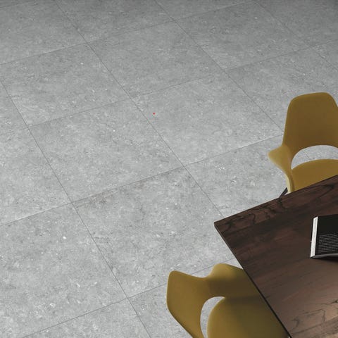 Flisen er retskåret, slidstærk og nem at vedligeholde, velegnet til både gulv og væg.