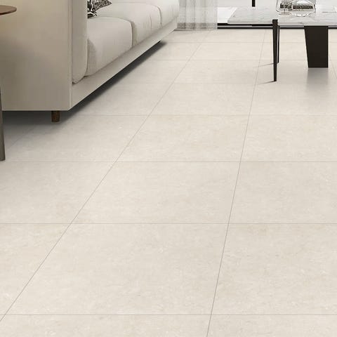 Civica White er en lys porcelænsflise i 60×60 cm med et rent, steninspireret udtryk og naturlig overfladevariation.