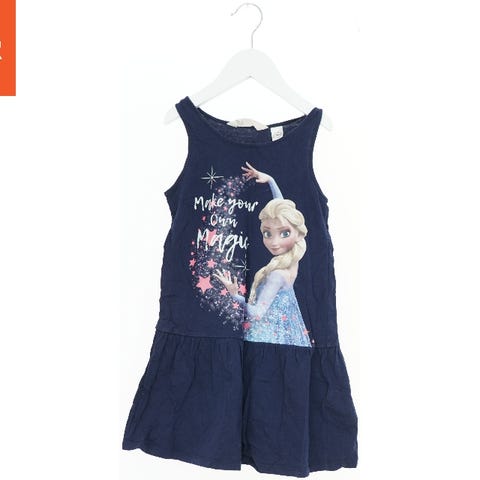 Kjole til børn med kort ærme og et lilla topstykke med et print af Disney figurerne Mickey og Minnie Mouse. Nederdelen på kjolen er hvid og lavet af gennemsigtigt tyl med gul blomsterdetaljer. Der er en lille knude foran på toppen, og ryggen er ensfarvet lilla.