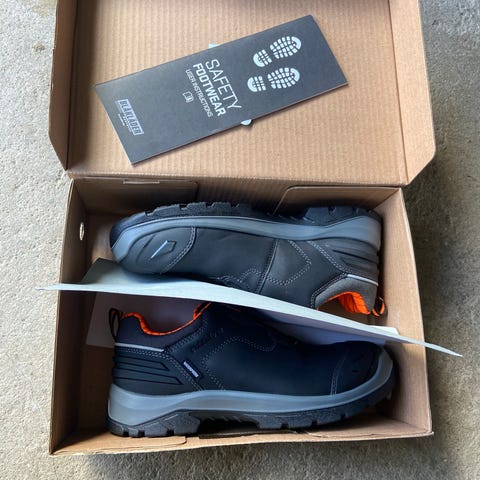 Brugte blåklæder sikkerhedssko str 48. 150 kr plus porto.