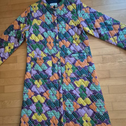 Lollys Laundry frakke i størrelse M med multifarvet leopardmønster. Fremstillet i materialet cordfløjl. Designet til kvinder.