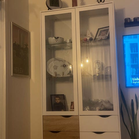 Stort flot delta vitrine alm. Brugsspor. Det ene hængsel indeni skal lige ordentlig på. Har jeg ikke gjort. Fast pris.