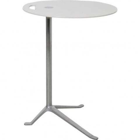 Sidebord i krom og valnød (Little Friend/Salto/Fritz Hansen). Som nyt. Regulerbart 50-73 cm, diameter 43 cm. Nypris 9.-10.000.