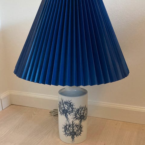 Design: Lampen er dekoreret med blå tidsler.