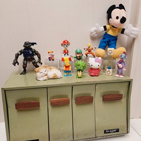 Dette er en legetøjsfigur af Donkey Kong motorcykel designet til fans af Nintendo. Figuren er detaljeret med et robust kædehjulsdesign og har DK-logoet på siderne. Den primære farve er rød og gul, med sølvfarvede detaljer, der skaber et mekanisk udseende. Produktet er udviklet af Activision i samarbejde med Nintendo, som angivet på bunden af figuren. Det måler 9,5 cm i længden.
