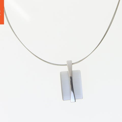 Den viste genstand er en enkel sølv halskæde, som måler 44 cm i længden. Halskæden har et simpelt kæde-design og en lås i enden for sikker fastgørelse rundt om halsen. Den ser ud til at være elegant og kan nemt bæres til dagligdags eller formelle lejligheder.