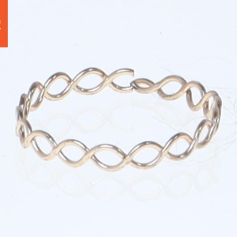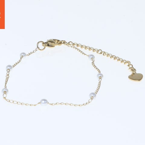 Den viste genstand er et guldkæde armbånd med rektangulære links. Armbåndet er af enkeltdesign med en sikkerhedslukning ved enden, der sikrer nem og sikker fastgørelse. Materialet ser ud til at være guld eller guldaktigt, hvilket giver en flot og elegant glans. Armbåndets omkreds er 10 cm, hvilket gør det egnet til håndled. Det kan let matches med forskellige outfits for et stilfuldt udseende. Tags: armbånd, kæde, guld, smykker