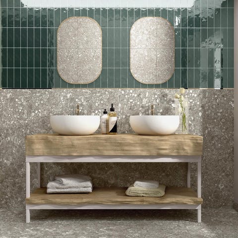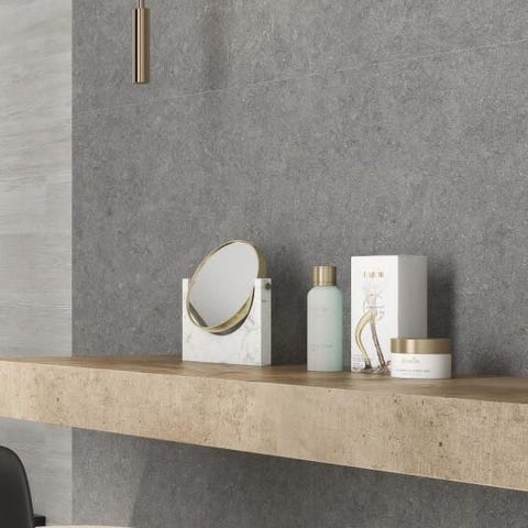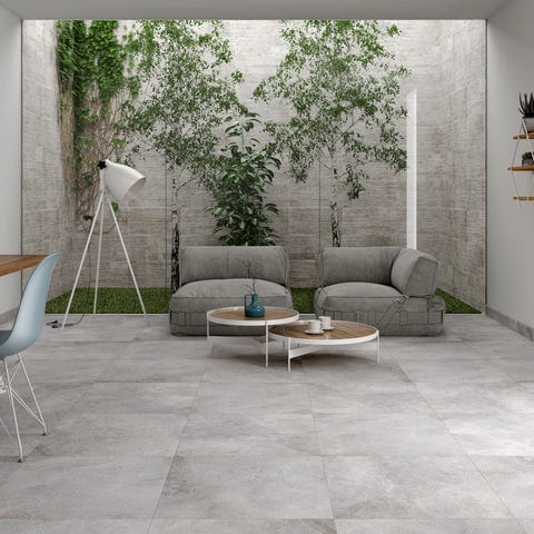 Pamesa Erding Grey 45×90 cm er en halvpoleret/lappato porcelænsflise med eksklusivt stenlook i grå nuancer.