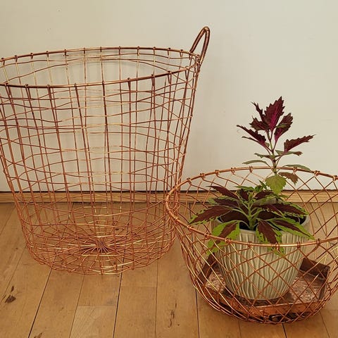 Retro Teak og Kobber metal kurv (str. 29 cm)