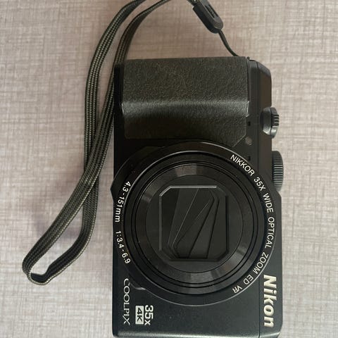 Nikon Coolpix kompakt kamera i sort. Kameraet har indbygget zoomobjektiv med 25x optisk zoom, indbygget blitz og et vipbart LCD-display på bagsiden, som gør det muligt at fotografere fra forskellige vinkler. Kameraet har programhjul på toppen til valg af forskellige optagefunktioner samt elektronisk søger. Leveres med håndledsrem og et beskyttende etui, samt 2 ekstra batterier og oplader.