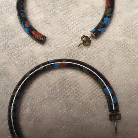 Runde øreringe med røde striber (str. Ø 5 cm)