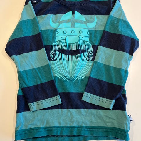 En langærmet brun bluse med motiv af en viking på forsiden. Designet har en rund halsudskæring og knappelukning ved skulderen.