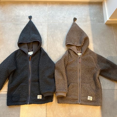 Sættet består af en fleecejakke med lynlås og lange ærmer samt et par matchende fleecebukser med elastik i taljen og manchetter ved anklerne. Begge dele er lavet af et blødt, isolerende stof, der egner sig til køligere vejr.
