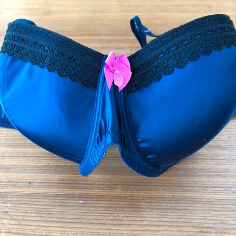 Sort bh med blonder i størrelse 85C cm. Bh'en har justerbare stropper og lukning bagpå. Designet inkluderer dekorative blomsterdetaljer på skålene, hvilket giver et elegant udseende.