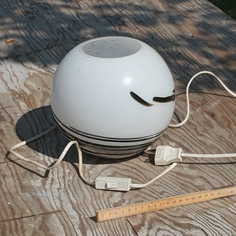 Denne genstand er en glaskuppel med en diameter på 30 cm, beregnet til brug som lampeskærm. Den har en cirkulær åbning i toppen til fastgørelse. Designet er enkelt og transparent, velegnet til forskellige typer lamper.
