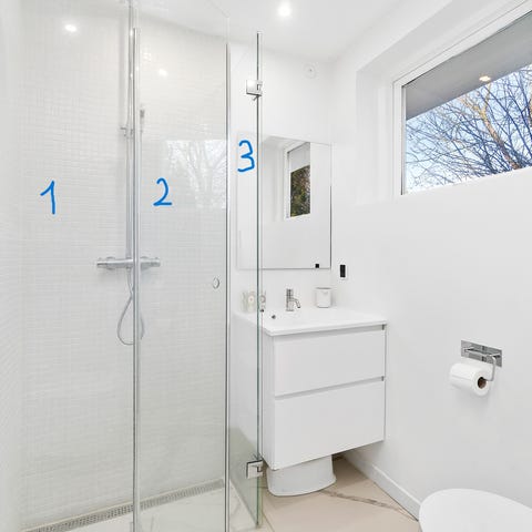 Uåbnet Contura Shower Space femkantet bruseafskærmning: B=90cm, L=90cm