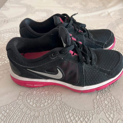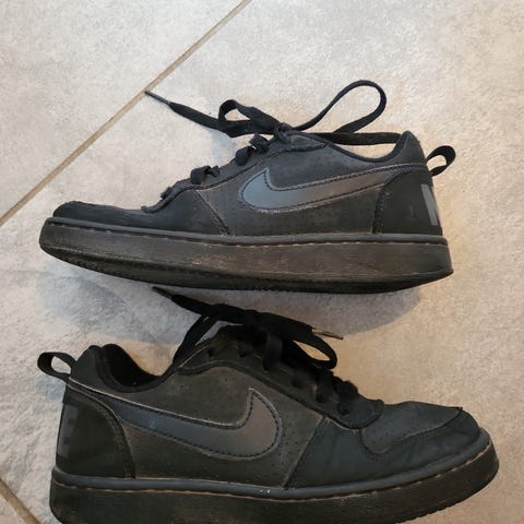 Nike sneakers til børn, unisex model i str. 36. Skoene er i sort og hvid med snørelukning og gummisål. Velegnet som hverdagssko eller fritidssko til både drenge og piger.