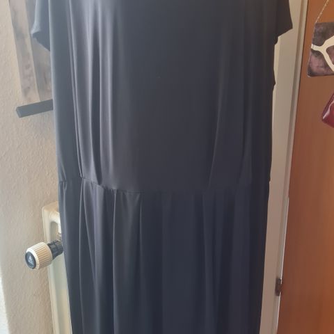 længde fra skulder: ca. 129cm, med 80cm høj slids i højre side. Som ny.