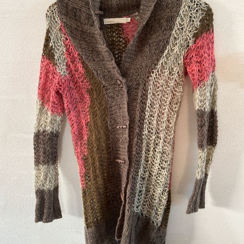 Trøje fra ICHI, str.: M ( passer til str. 40-42)), farve: brun, længden: 60 cm, brugt kun 1 gang, i god stand. 15 % alpaka, 55 % akryl, 28 % nylon, 2 % elastan.