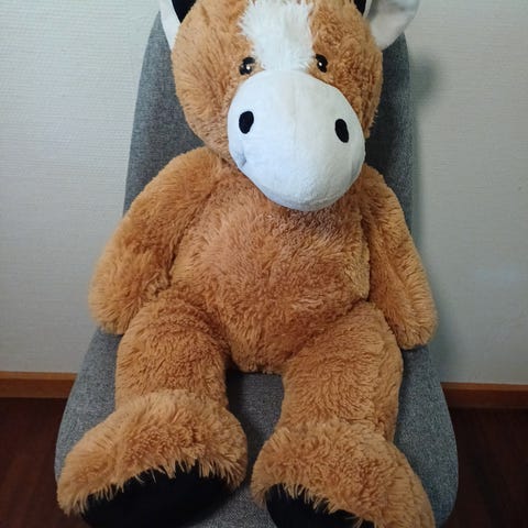 Fin stand. Ingen pletter. Som ny. Måler ca. 140 cm i højde. Lyserød plys og guldhorn.
