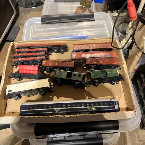 Marklin bil transport togvogne, brugte med fejl ,mangler holder til at holde dem oppe i enden på vognene,brugte HO vogne