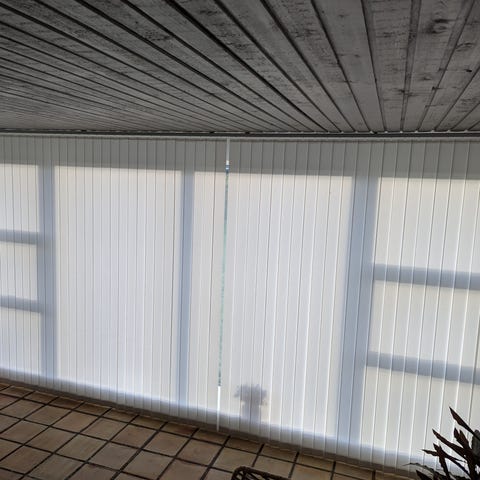 Vi har 2 lamelgardiner, som nogen måske kan bruge. De er fra en 3-værelses lejlighed i Kansleren ind mod ”gården” med bredderne hhv. 237,5 og 88 cm og højden ca. 210. Farven er mørk vissengrøn.