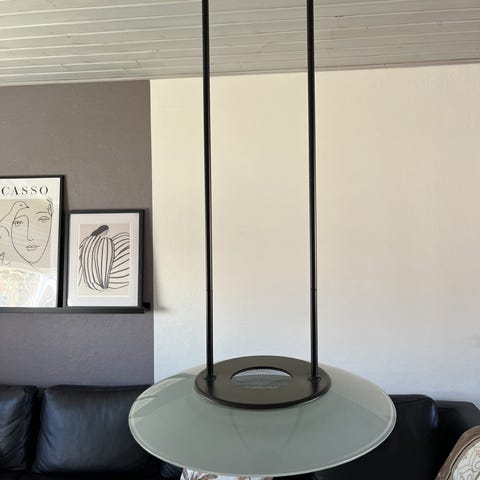 Sælges Loftlampe i materet glas stor fatning.