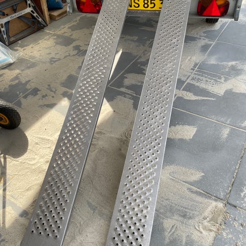 2 stk ramper til køretøjer med perforeret overflade for bedre greb og sikkerhed. Mål: 200 x 20cm.