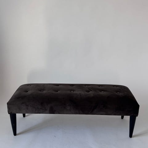 Buttons bænken er lavet i sort/hvidt stof, mens bænkens stel er lavet i sort stål.