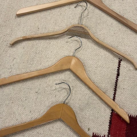 Sæt træbøjler i naturtræ med metalkrog. Velegnet til ophæng af skjorter, jakker eller andre beklædningsgenstande i garderobe eller på tøjstativ. Klassisk facon, som giver god støtte til tøjet og hjælper med at bevare formen.
