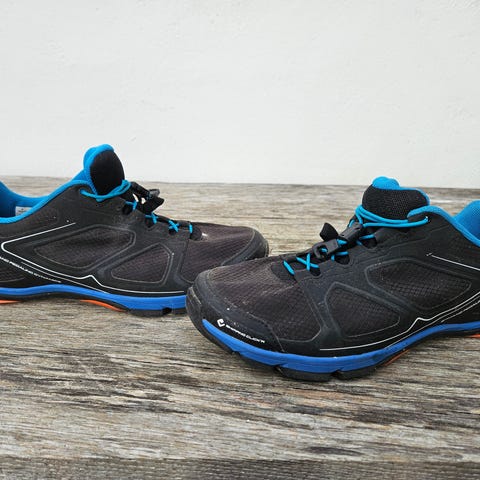 Cykelsko str. 37, model SH-R071 fra Shimano i sort/blå. Har velcrolukning over vristen.