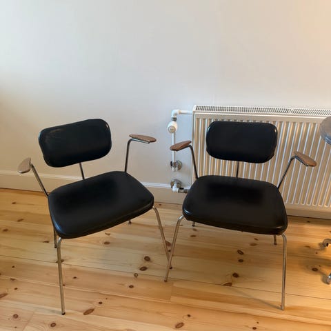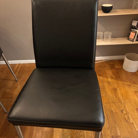 Sælger 6 stk. IKEA Bernhard spisebordsstole i sort læder. Stolene er i fin stand og velholdte med almindelige brugsspor. Klassisk og tidløst design med god siddekomfort og stel i metal.