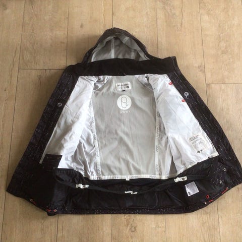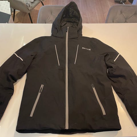 RefrigiWear jakke i 100 % nylon i mørkeblå farve. Jakken har hætte, som kan tages af - gennemgående lynlås, taljebælte og flommer. Materialet er regntæt og åndbart. Virkelig varm og feminin jakke med bælte som fremhæver det feminine. Brugt en gang på skiferie. Kan klare ned til store frostgrader og tilpasser sig omgivelsernes temperatursvingninger. Farven er klassisk og smuk mørkeblå. Se mærkater på foto. Nypris kr 2.800,- (danske kroner)