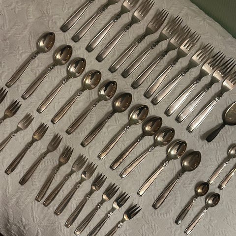 Jeg har ryddet op i skuffen og fandt dette sølv tøj som vi aldrig bruger og vil derfor sælge det meget billigt