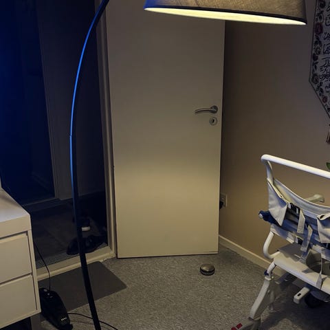 Fin standerlampe i træ. Ingen skrammer eller ridser. Virker som den skal.