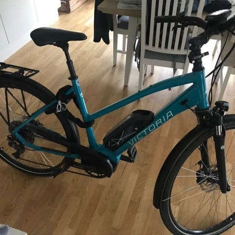 Super fin stand rigtig let at køre. 7 gear, Batteri fra 2024 rækkevidde ca. 25 km årgang ukendt da vi selv købte cyklen brugt
