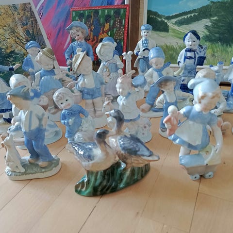 Porcelænsfigur børn siddende blå kjole