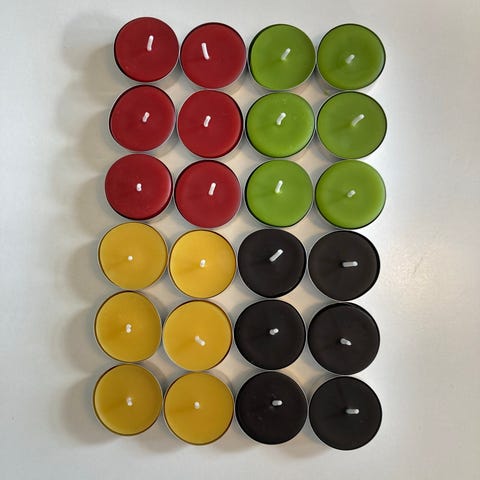 Alle lys er 2- eller 3-farvede og håndrullet i ren bivoks.