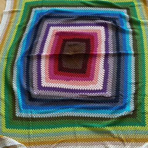 Anne Kirketerp mindfuldness tæppe, jeg har laver et par firkanter- men er gået i stå- så nu må det videre.
