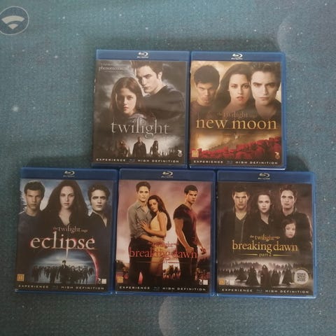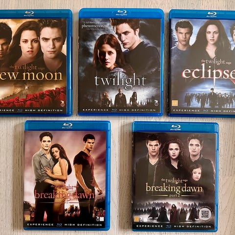 Da den stille pige Bella (Kristen Stewart) flyttede til byen Forks, havde hun ingen anelse om, at det ville blive starten på et af de helt store eventyr med masser af kærlighed - og vampyrer! Hun møder den uimodståelige Edward (Robert Pattinson), der viser sig at være vampyr, og sør'me om hun ikke også bliver ven med en varulv. Her er alle fem film samlet i en pakke: